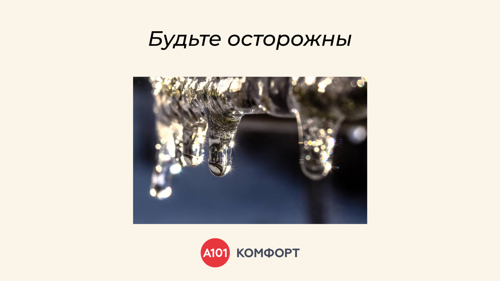 • Не стойте под козырьками — возможен резкий сход снега и льда