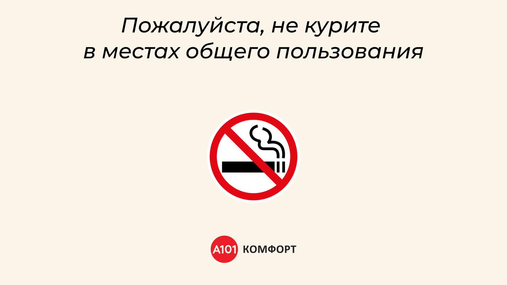🚭 Напоминаем: в соответствии с Федеральным законом № 15‑ФЗ «Об охране здоровья граждан от воздействия окружающего табачного дыма…» курение (включая электронные сигареты) запрещено в общественных зонах многоквартирных домов — лифтах, лестничных клетках, холлах, подъездах и на детских площадках.